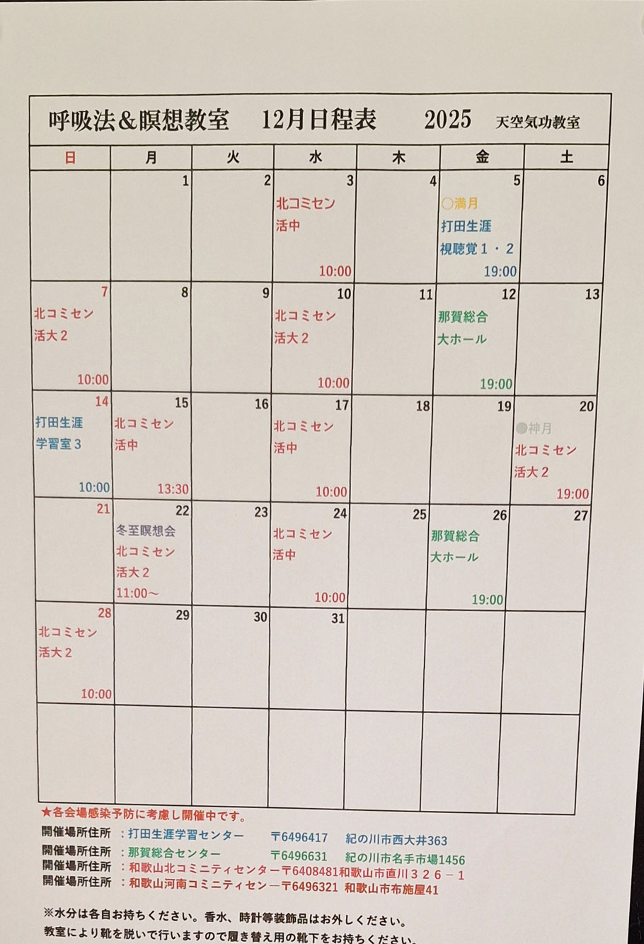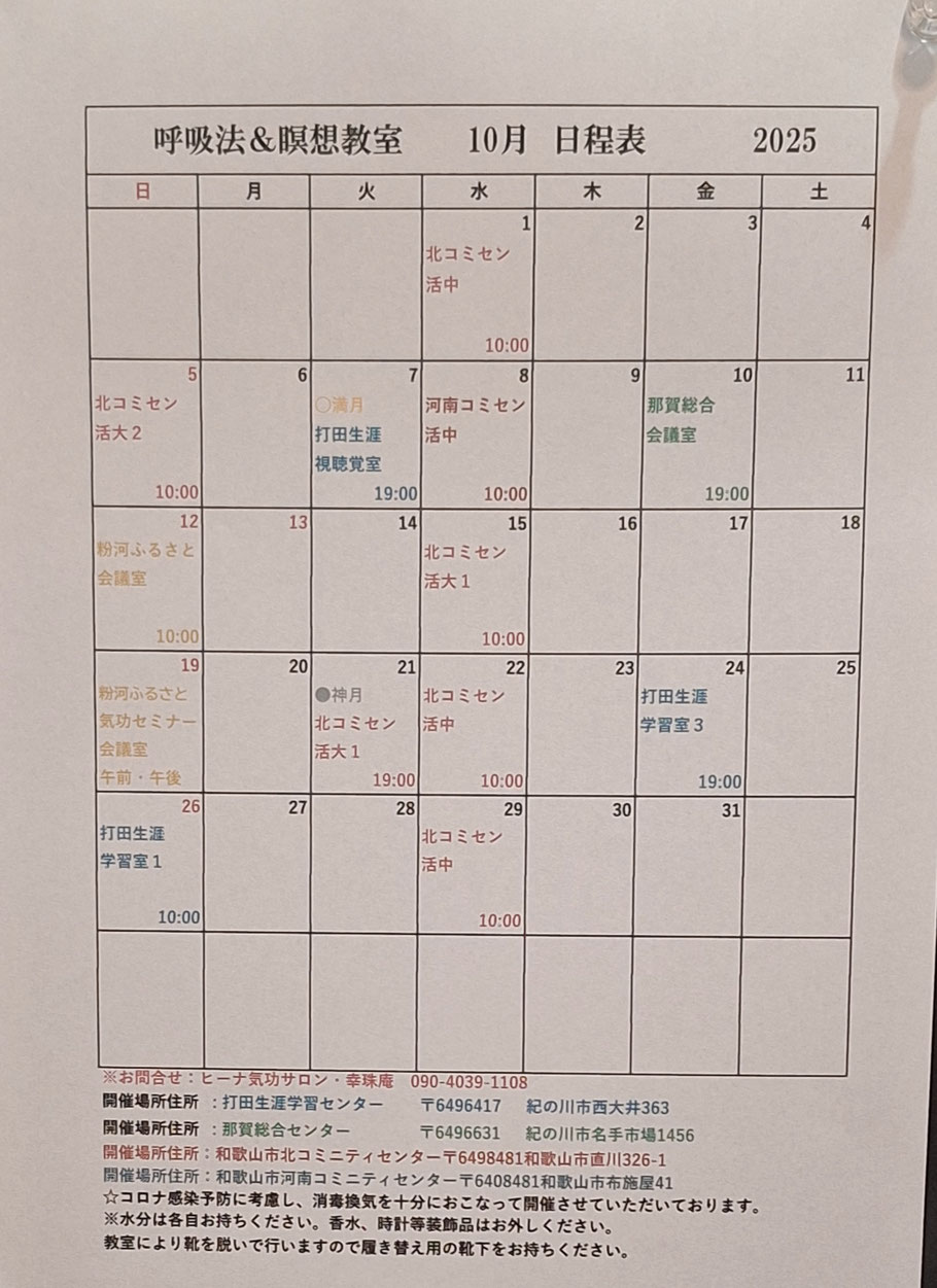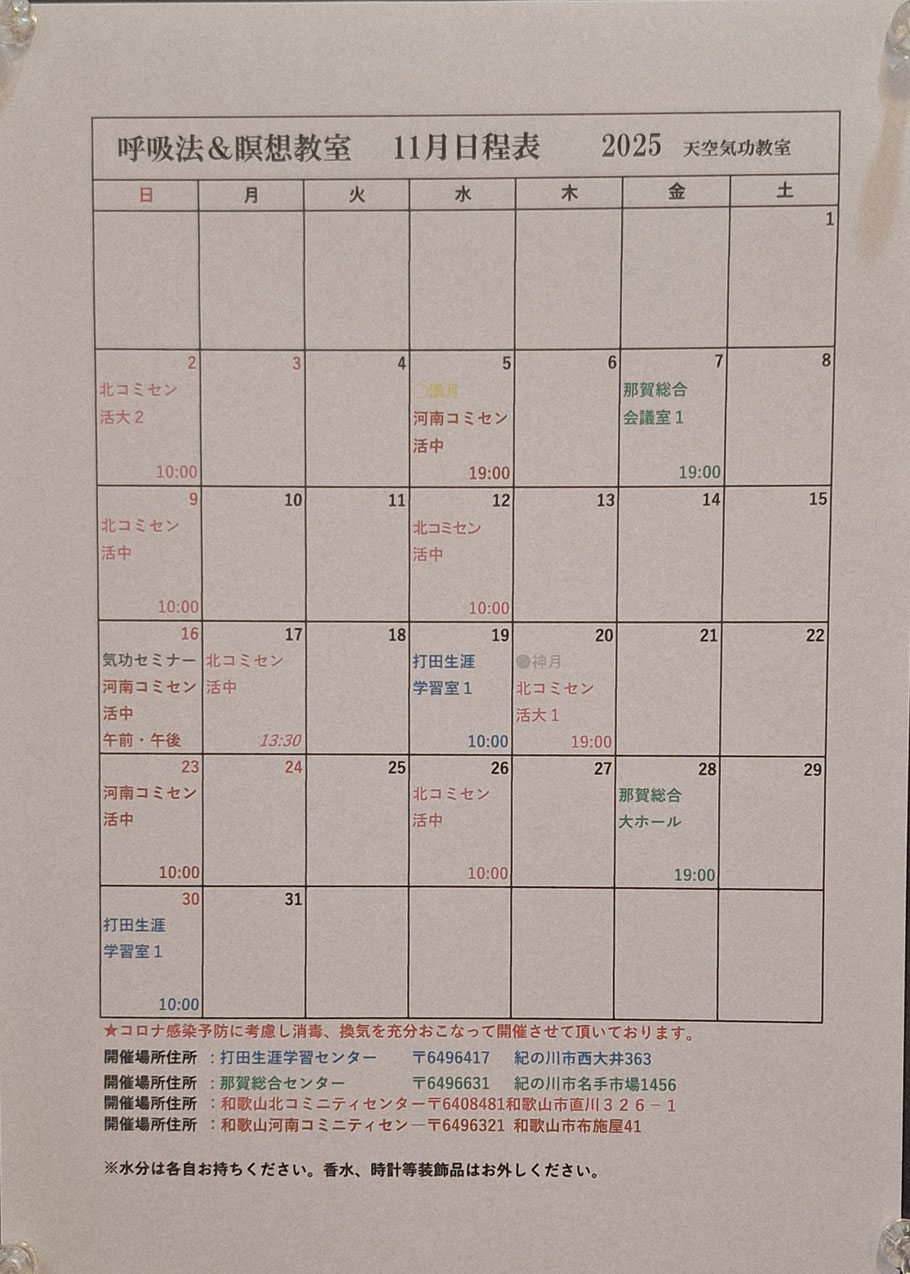 ☆ 気 功 教 室 日 程 表 ☆